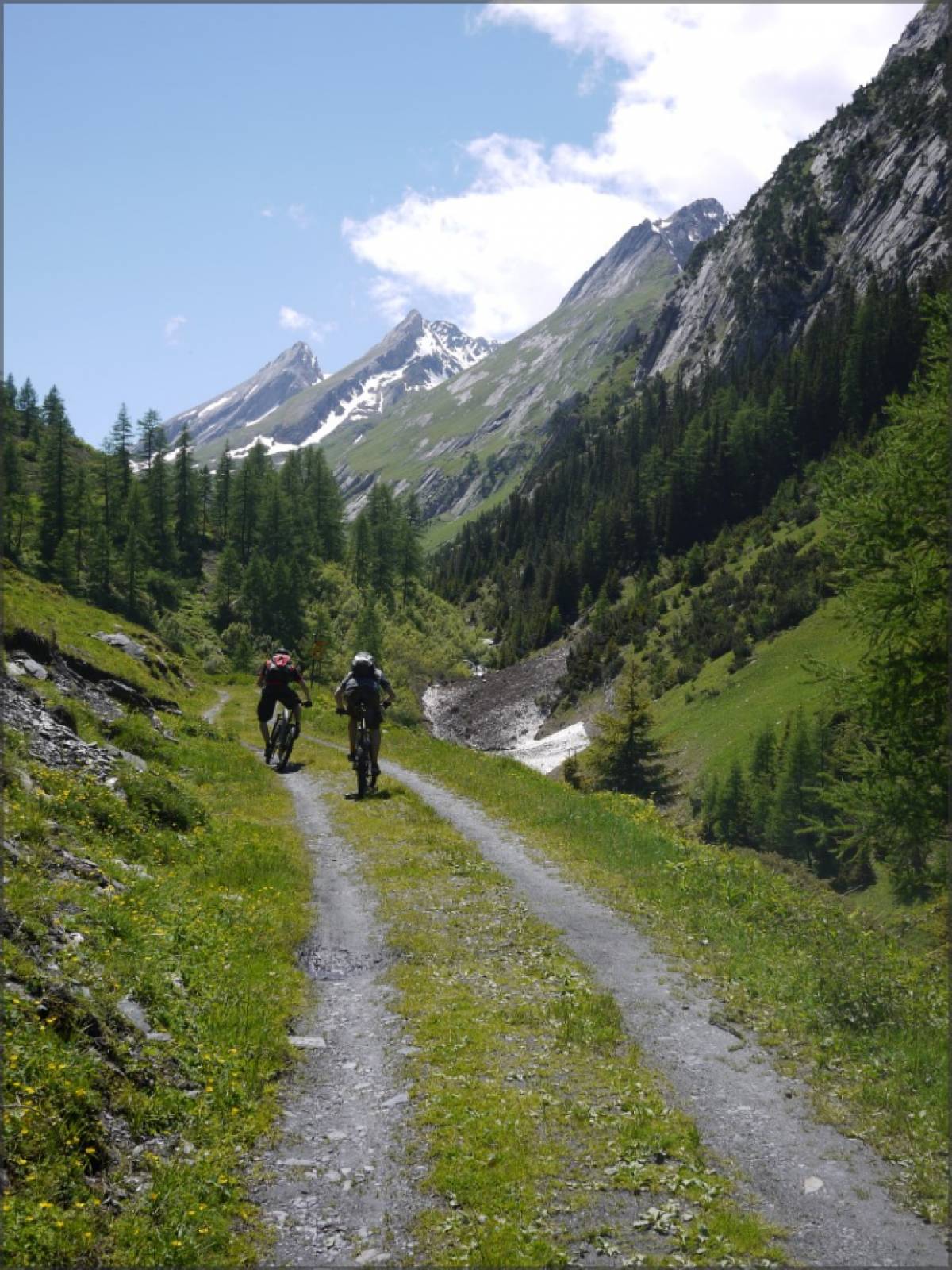 Pour maximiser le plaisir, on peut prolonger la descente jusqu'à Orsières. Il suffit de continuer le sentier évident depuis le point 1190 et ensuite de rejoindre Orsières via Montatuay. La partie entre le point 1190 et Montatuay est une véritable tuerie: c'est un goulet de 2m de large, raide, presque rectiligne...on dirait du bobsleigh, fantastique !!!
