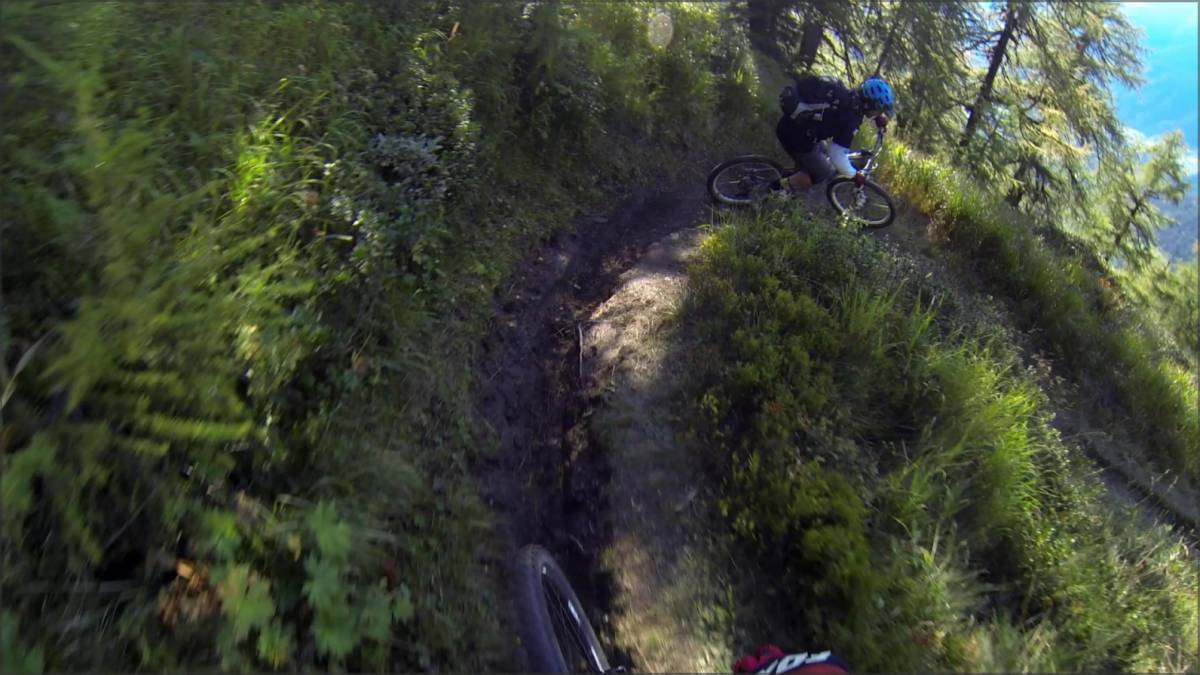 Une dernière pause sera alors nécessaire pour avoir l'énergie nécessaire pour avaler les plus de 1100m de DH qui nous séparent encore de Lax. La première partie jusqu'à Bärg est plutôt rapide et assez cassante. Le sentier étant pas mal délavé lorsqu'il pleut, on a par endroits l'impression de carrément rouler dans un bisse, mais le tout reste bien ludique et il suffit de diminuer un brin sa vitesse pour ne plus se faire secouer comme un prunier...